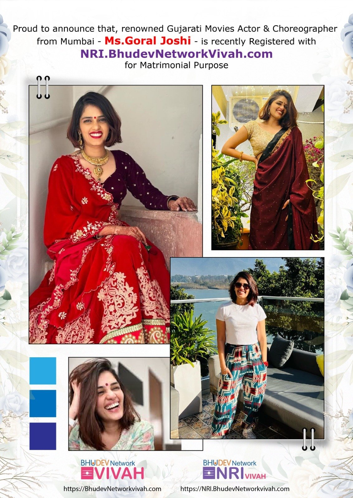 Proud to announce that, renowend Gujarati Movies Actor & Choreographer from Mumbai - Ms. Goral Joshi - is recently Registered with  NRI.BhudevNetworkVivah.com  for Matrimonial Purpose